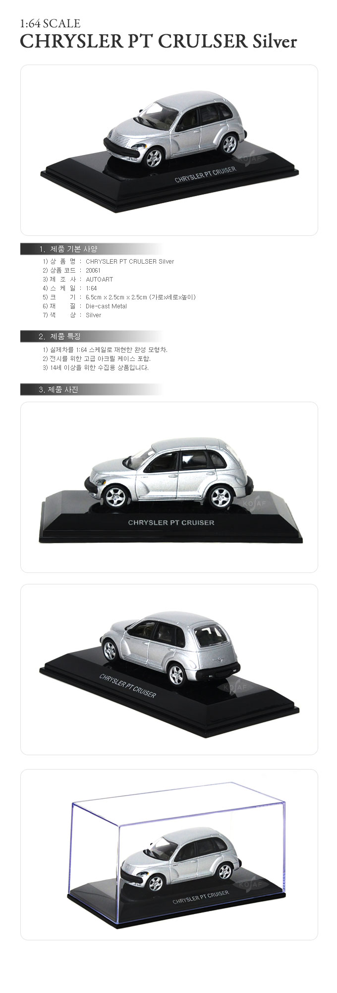 > [AUTOART]1/64 CHRYSLER PT CRUISER 2001 (SLIVER)_20061/Å©¶óÀ̽½·¯/¸ðÇüÀÚµ¿Â÷/´ÙÀÌij½ºÆ®