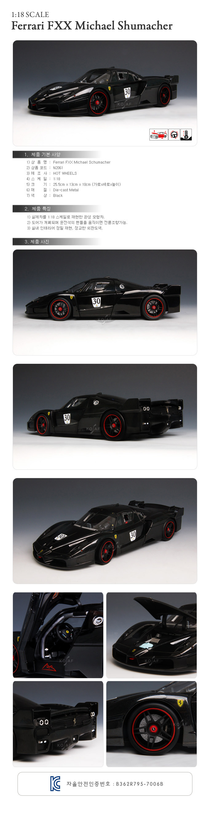 [HOTWHEELS] 1:18 FERRARI FXX MICHAEL SCHUMACHER'S PRIVATE COLLECTION - N2061(ǰÀý)