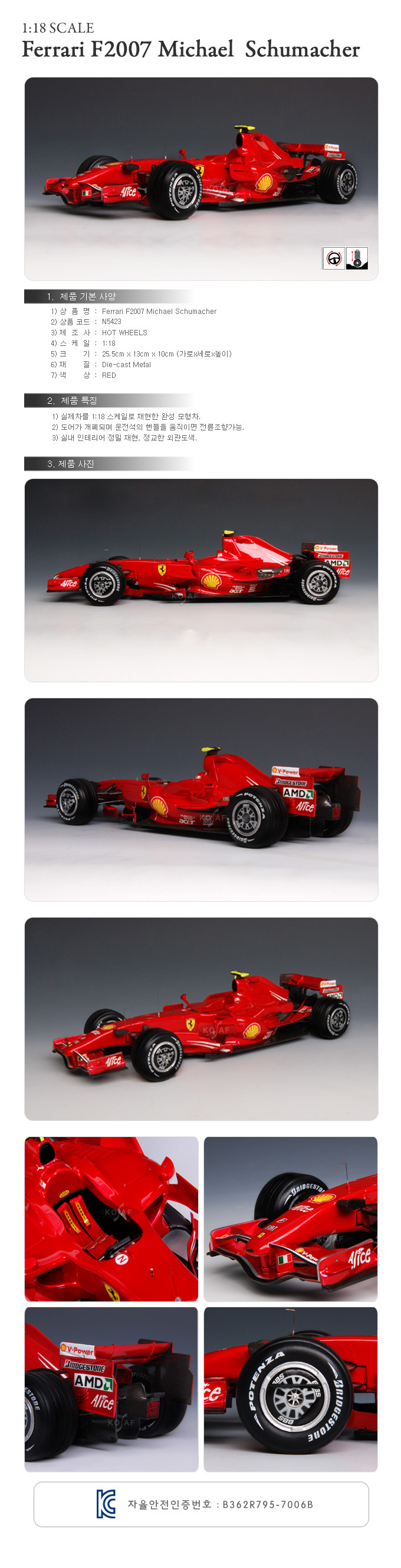 [HOTWHEELS] 1:18 Ferrari F1 F2007 BARCELONA TEST DRIVE MICHAEL SCHUMACHER - N5423(ǰÀý)