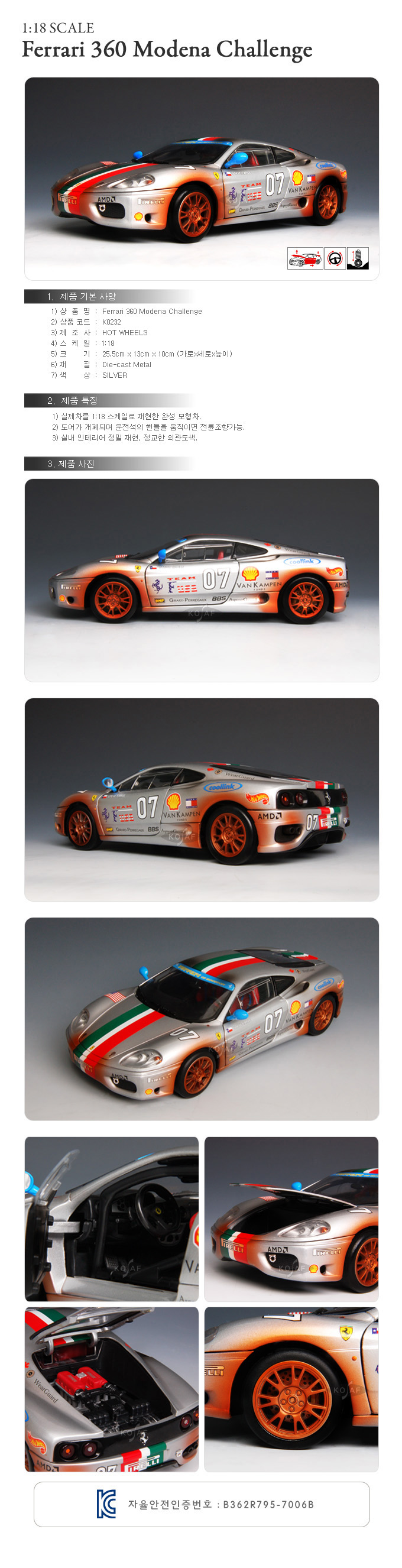 [ÇÖÈÙ½º]1:18 Ferrari 360 MODENA CHALLENGE - K0232/Æä¶ó¸®/¸ðÇüÀÚµ¿Â÷/´ÙÀÌij½ºÆ®
