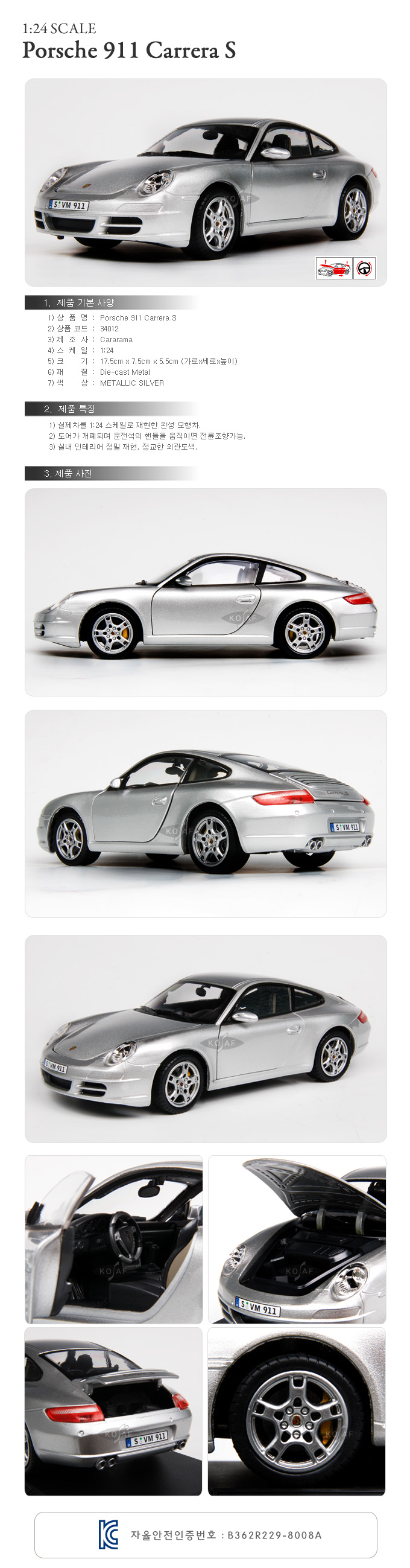 [Ä«¶ó¶ó¸¶] 1:24 Porsche 911 Carrera S - 34012/Æ÷¸£½¦ 911/¸ðÇüÀÚµ¿Â÷/´ÙÀÌij½ºÆ®