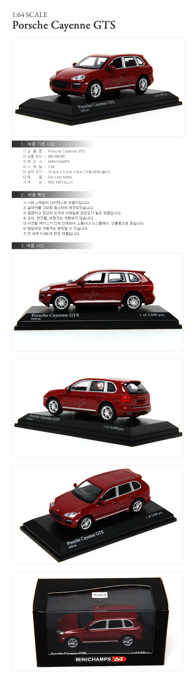 > [MINICHAMPS] 1:64 Porsche Cayenne GTS - 640 066280/Æ÷¸£½¦ Ä«ÀÌ¿£/¸ðÇüÀÚµ¿Â÷/´ÙÀÌij½ºÆ®