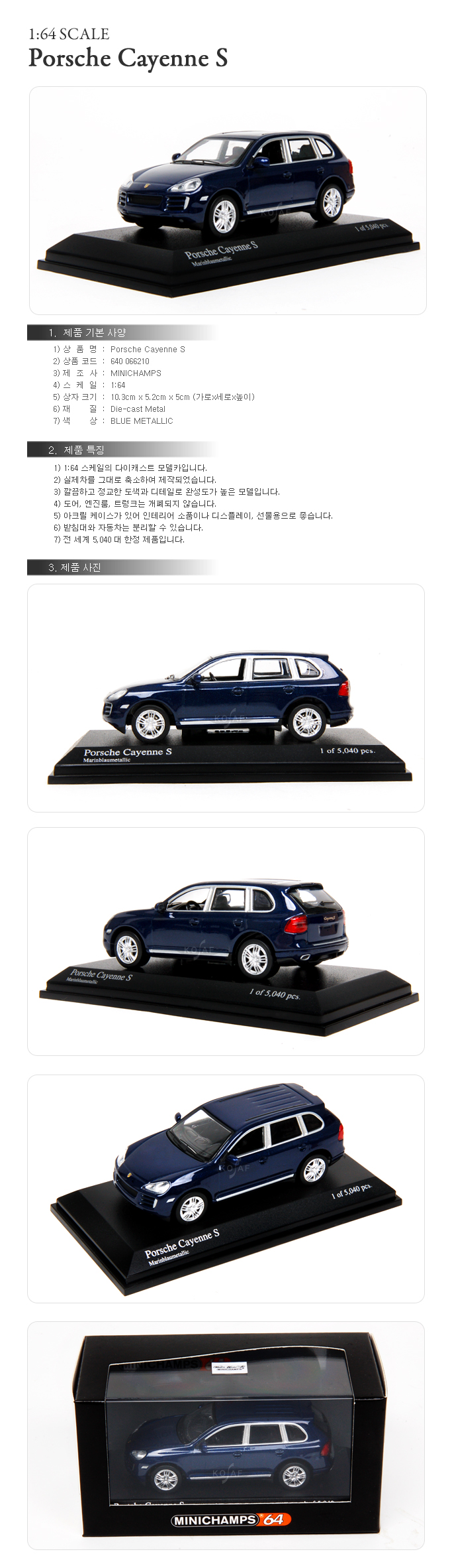 > [MINICHAMPS] 1:64 Porsche Cayenne S - 640 066210/Æ÷¸£½¦ Ä«ÀÌ¿£/¸ðÇüÀÚµ¿Â÷/´ÙÀÌij½ºÆ®