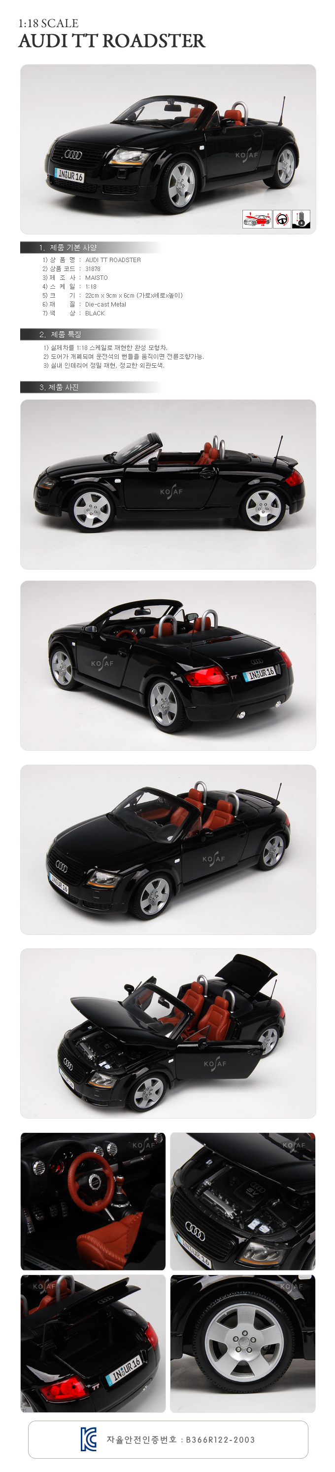 [¸¶À̽ºÅä]1:18 AUDI TT ROADSTER - 31878/¾Æ¿ìµð/¸ðÇüÀÚµ¿Â÷/´ÙÀÌij½ºÆ®