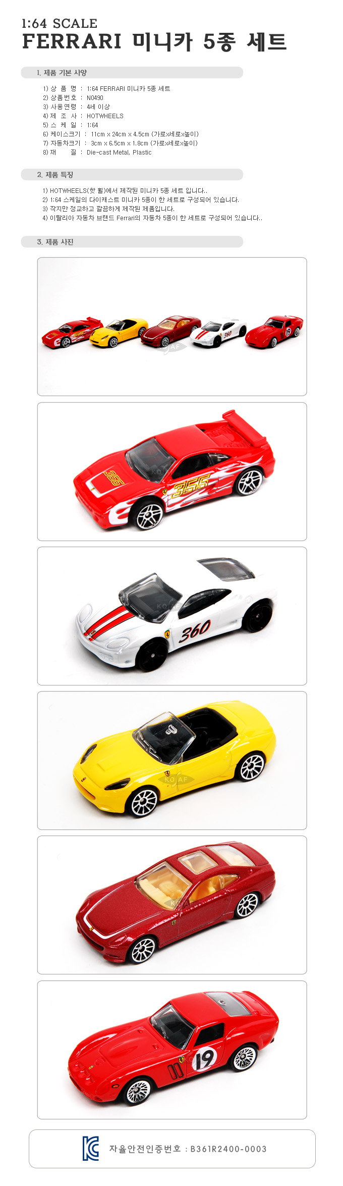 [HOTWHEELS] 1:64 Æä¶ó¸® ¹Ì´ÏÄ« 5Á¾ ¼¼Æ® - N0490/FERRARI/¹Ì´ÏÄ«/´ÙÀÌij½ºÆ®¸ðÇü