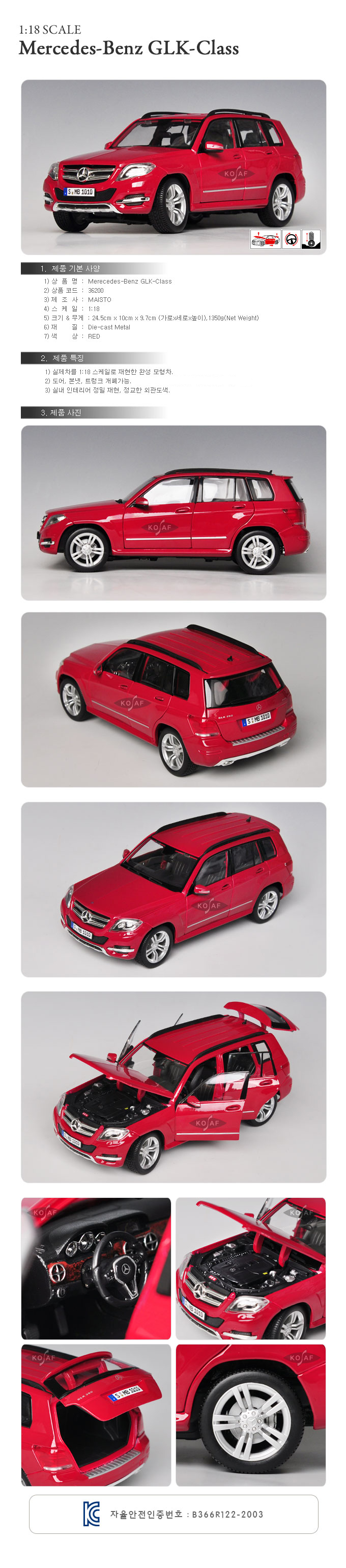 [¸¶À̽ºÅä] 1:18 Mercedes-Benz GLK-Class - 36200/º¥Ã÷/¸ðÇüÀÚµ¿Â÷/´ÙÀÌij½ºÆ®