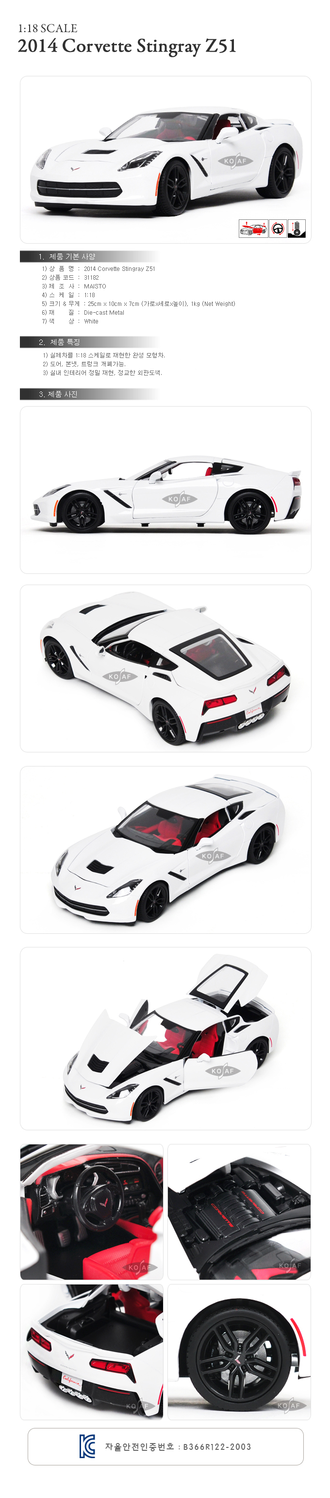 [¸¶À̽ºÅä]1:18 2014 Corvette Stingray Z51 - 31182/¸ðÇüÀÚµ¿Â÷/´ÙÀÌij½ºÆ®(ǰÀý)