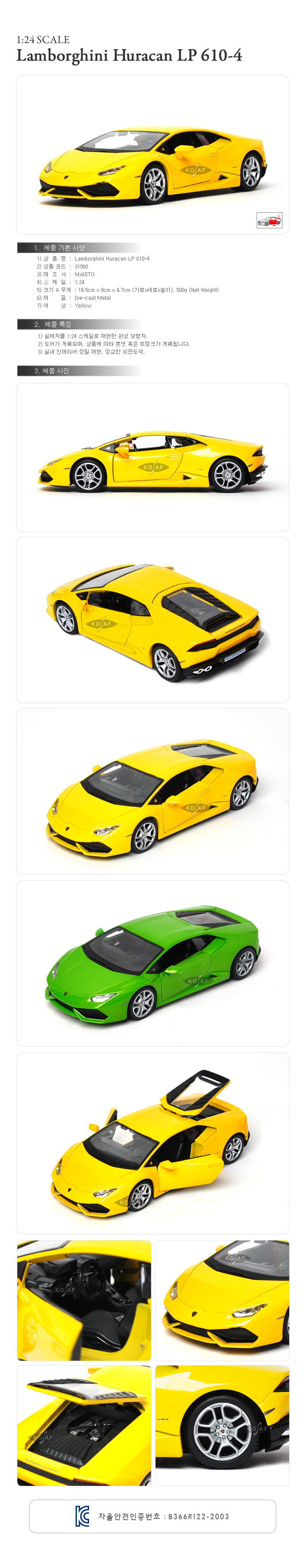 [¸¶À̽ºÅä]1:24 Lamborghini Huracan LP 610-4 - 31900/¶÷º¸¸£±â´Ï/¿ì¶óÄ/¸ðÇüÀÚµ¿Â÷/´ÙÀÌij½ºÆ®
